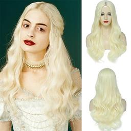 Weiße Perücken für Frauen, 66 cm lang, weiße Perücke, synthetische Perücke, Mittelteil, natürlich aussehende weiße, gewellte Perücke für den täglichen Gebrauch, Halloween-Cosplay-Perücke,