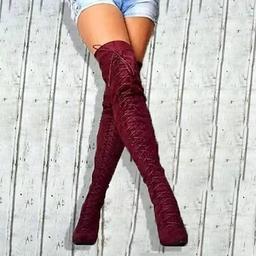 Overknee-Stiefel zum Schnüren für Damen – schwarze und burgunderfarbene, oberschenkelhohe Stilettos für die Wintermode und zum Ausgehen