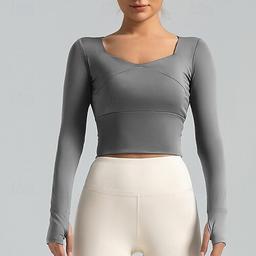 Damen Yoga Top Rundausschnitt Schnelltrocknend Leicht Atmungsaktiv Gerafft Langarm Sport Einfarbig T-Shirt Oberteil Für Laufen Fitness Yoga Schlank Sportkleidung