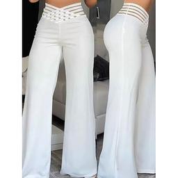 Damen weite Chino-Hosen Baggy Pants Mode Streetwear ganzer Länge hohe Taille einfarbiger elastischer Bund bequem weich angenehm mikro-elastisch Outdoor Straße Schwarz Weiß Blau Fuchsia Regular Fit