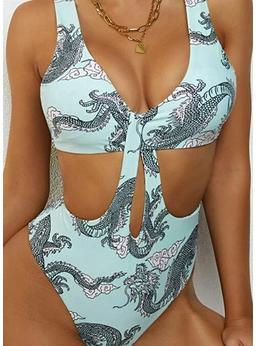 Women's Swimwear One Piece Swimsuit Cut Out Beach Wear Summer Graphic Animal U Neck Sleeveless Bathing Suits