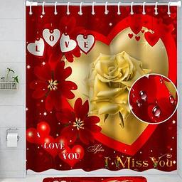 4-Piece Shower Curtain Set Valentine's Day Bathroom Decor , Modern Home Bathroom Decor with Bath Mat, U-Shaped Mat, Toilet Lid Cover, and 12 Hooks