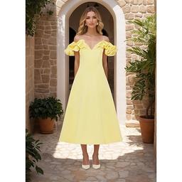 ButterA-line Cocktail Dresses Elegant Dress Formal Wedding Tea Length Sleeveless Off Shoulder Satin with Ruffles