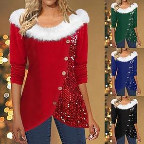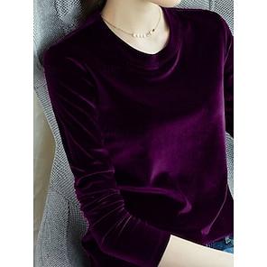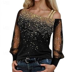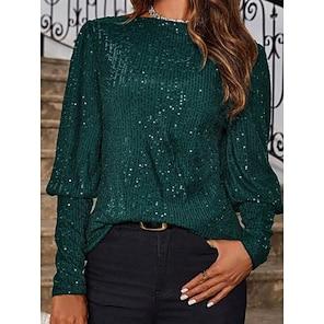 Women's Shirt Blouse Plain Basic Modern Long Sleeve V Neck Regular Tops Daily Holiday Sequins Silver Black Yellow Pink Red Summer