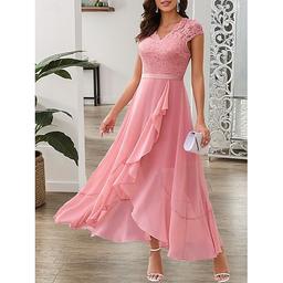 Women's Graduation Dress Maxi Dress Solid Color Prom Dress A Line Dress Fit And Flare Dress Elegant Formal Semi Wedding Guest Engagement Cocktail Party Graphic Sleeveless V Neck