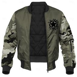 Men's Camo / Camouflage Bomber Jacket Coat Thermal Comfortable Vintage Casual Sports & Outdoor Street Dailywear Zipper 3D Print Multi Pocket Winter Standing Collar Long Sleeve Blue Brown Military