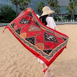 Bohemian Style Women's Long Print Scarf, Breathable and Versatile, Lightweight Chiffon Shawl for Neck Decoration, Summer Sun Protection, Indoor Air Conditioning Wrap, Beach Towel, Winter Warmth - Machine Washable Polyester Scarf