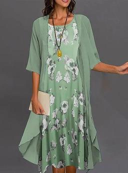 Women's Graduation Dress Midi Dress Chiffon Dress Shift Dress Elegant Daily Loose Fit Floral Half Sleeve Crew Neck Green Summer Spring Fall