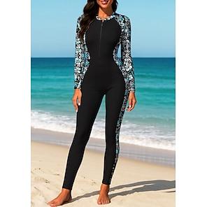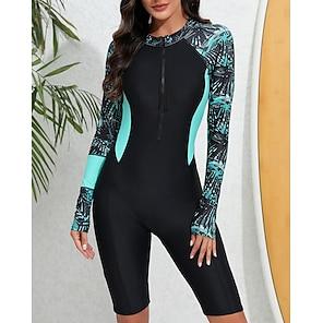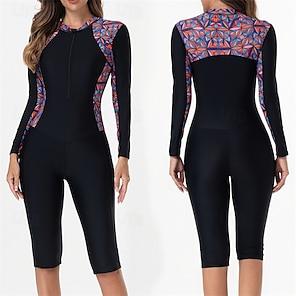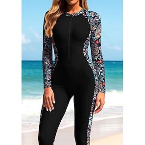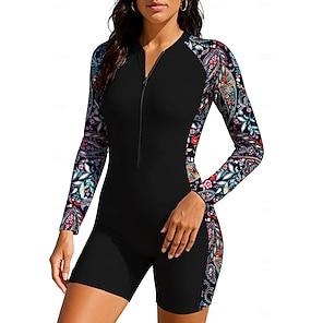 Women's Rash Guard One Piece Swimsuit Floral Printed Quick Dry Lightweight Breathable Long Sleeve Bodysuit Bathing Suit Front Zip Surfing Beach Water Sports Summer