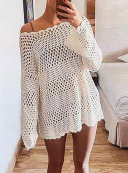 Women's Swimwear Cover Up Beach Dresses Swimsuit Cut Out Vacation Beach Wear Plain Long Sleeve