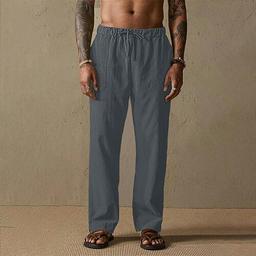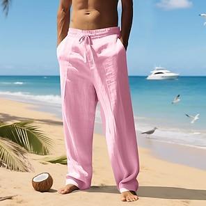 Men's Linen Pants Trousers Summer Pants Gauze Pants Drawstring Elastic Waist Straight Leg Plain Comfort Breathable Full Length Outdoor Casual Daily Fashion Classic Style Black White