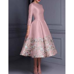 A-Line Tea Length Cocktail Dresses Party Dresses Elegant Color Block 3/4 Length Sleeve Jewel Neck Valentine's Day Formal Belt / Sash Satin with Glitter Slit Embroidery