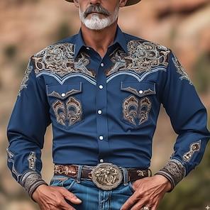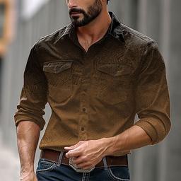 Men's Ombre Cowboy Western Shirt Button Up Shirt Cowboy Shirt Long Sleeve Casual Formal Daily Holiday Fall Winter Spring & Summer Turndown Collared Shirts Button Up Pocket 3D Print Brown