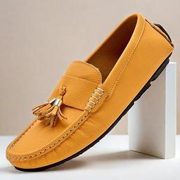 Men's Orange Faux Leather Loafers with Tassel Detail | Comfortable and Stylish for Everyday Wear