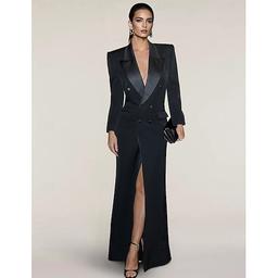 Tuxedo Dress Mermaid / Trumpet Wedding Guest Satin Elegant Long Sleeve Floor Length Peak Lapel Double Breasted