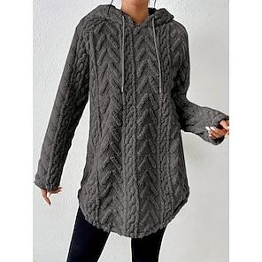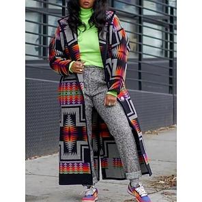 Women's Zip Sweater Sweater Jacket Casual Sweater Casual Soft Geometric Paisley Crew Neck Zipper Hooded Long Sleeve Regular Tops Knit Outdoor Daily Weekend Wine Red Black Fall Winter