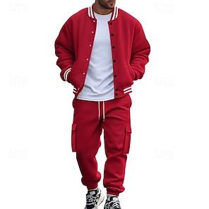 Men's Tracksuit Sweatsuit Jogging Suits Black Red Royal Blue Light Grey Hooded Plain Pocket 2 Piece Sports & Outdoor Daily Holiday Streetwear Basic Casual Spring & Fall Clothing Apparel Hoodies