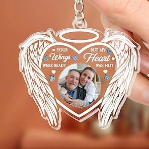 Personalized Acrylic Memorial Photo Keychain, Custom Keychain Sympathy Keepsake for Loss of Loved One,Angel Wings Memorial Gifts Remembrance Decoration - Bereavement Condolences Gifts