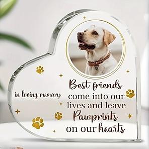 Personalized Acrylic Heart Pet Memorial Plaque, Custom Dog Photo Block and Paw Print Keepsake, Sympathy Gift for Pet Loss, Tabletop Decor for Valentine's Day, Christmas, Thanksgiving, Graduation, Gift for Wife, Dad, Kids
