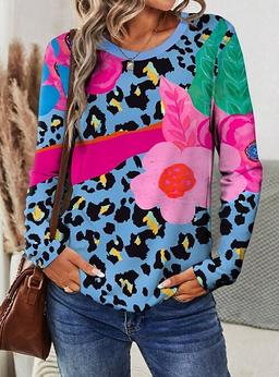 Women's T Shirt Floral Casual Long Sleeve Crew Neck Regular Tops Daily Print Blue Spring Fall