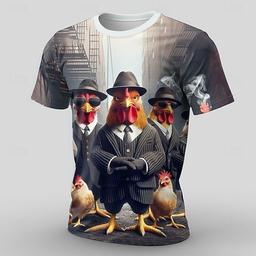 Men's Animal Funny T Shirt Short Sleeve T shirt 3D Print Crew Neck Shirt Exaggerated Designer Casual Party Casual Holiday Blue Gray Summer Spring All Seasons Clothing Apparel S M L XL XXL XXXL