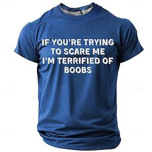 Mens Funny Graphic T-Shirt: 'If You're Trying to Scare Me I'm Terrified of Boobs' Short Sleeve Humor Tee