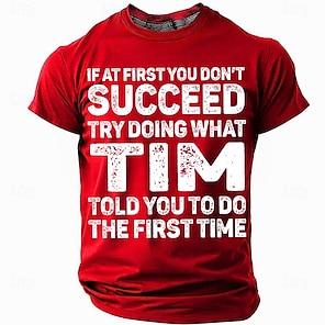 Men's Funny Red Graphic T-Shirt - 'If At First You Don't Succeed, Try What Tim Told You The First Time' Wordplay Tee