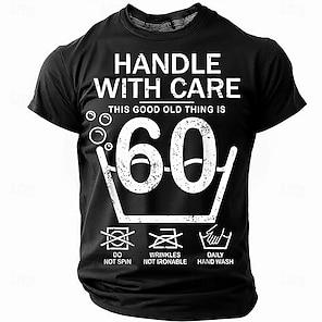 Mens Funny 60th Birthday Graphic Tee "Handle With Care This Good Old Thing Is 60" Washing Instructions Humor Short Sleeve Lifestyle T-Shirt