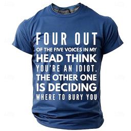 Mens T-Shirt Funny Sarcastic Graphic Novelty - 'Four Voices In My Head Think You're An Idiot, Bury You' Quote