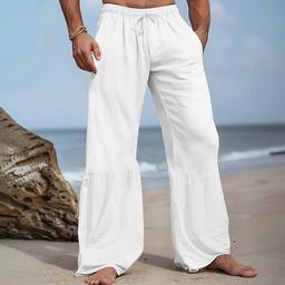 Men's Culottes Wide Leg Linen Pants Trousers Summer Pants Drawstring Patchwork Elastic Waist Plain Comfort Breathable Full Length Casual Daily Holiday Vacation Fashion Black White