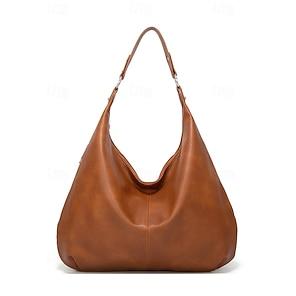 Women's Large Hobo Shoulder Bag – Soft PU Leather Slouchy Tote with Zipper, Side Pocket & Adjustable Strap, Minimalist Casual Style for Work, Travel, Shopping & Everyday Use
