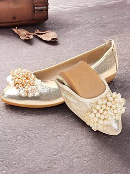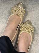 Women's Gold Glitter Ballet Flats with Pearl Embellishments – Elegant and Comfortable Shoes for Weddings and Special Occasions