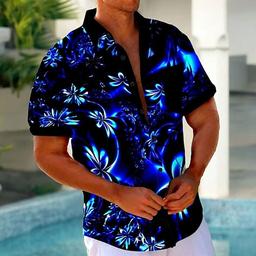 Men's Floral Summer Hawaiian Shirt Aloha Shirt Short Sleeve Hawaiian Resort Causal Casual Summer Spring Turndown Button Up Pocket Black Blue Purple Green