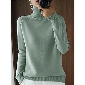 Women's Pullover Sweater Jumper Pullover Stylish Casual Soft Solid Color Ribbed Turtleneck Oversized Long Sleeve Regular Tops Knit Outdoor Valentine's Day Daily Blue Black Fall Winter