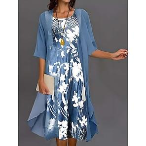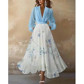 Women's Long Dress Maxi Dress Chiffon Dress A Line Dress Elegant Formal Party Wedding Guest Daily Regular Fit Floral Long Sleeve V Neck Fuchsia Summer
