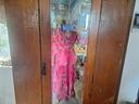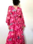 Love love this stylish feminine chiffon dress that looks very floaty when wearing. The dress is fully lined and is a loose fit, but the drawstring sash gives it shape. The front crossover sits perfectly and the soft sleeves have an elastic wrist creating a frill cuff. The dress is exactly as per promo photo and size guide. This dress is not suitable for our Aust Summer but could be worn in Winter or Autumn . Such a beautiful buy :
