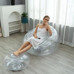 Inflatable Sofa With Sequins Lazy Sofa Inflatable Outdoor Sofa Bed With Footrest Combination Transparent Sofa Chair With Sequins Suitable For Camping Hiking