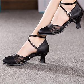 Women's Silver Glitter Dance Shoes – Low Heel Ballroom & Latin Performance Shoes with Cross-Strap for Salsa, Tango & Party Events