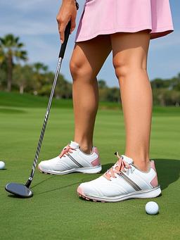 Sophisticated White and Pink Women's Golf Shoes - Sleek Design with Superior Traction, Ideal for All-Day Comfort on the Golf Course