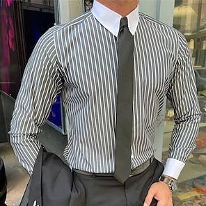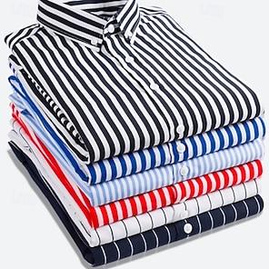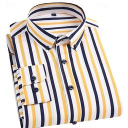 Men's Dress Shirt Striped Shirt Wrinkle Resistant Stretch Wedding Outdoor Light Blue Black Yellow Navy Blue Long Sleeve Collar Summer Spring Clothing Apparel