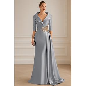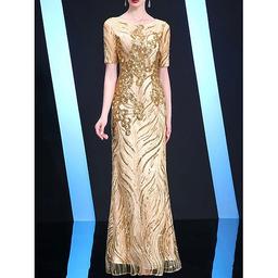 Dress Mother of the Bride Dress Elegant Party Crew Neck Floor Length Tulle Half Sleeve with Sequin