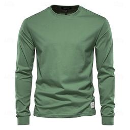 100% Cotton Men's Solid Color Cotton T Shirt Men Casual Crewneck Long Sleeved T shirts Spring Autumn High Quality Basic T-shirt