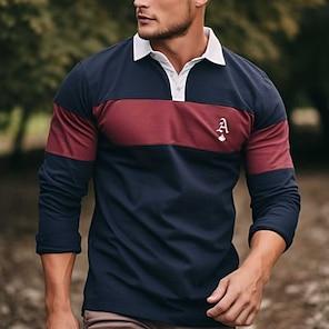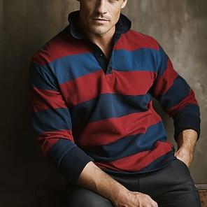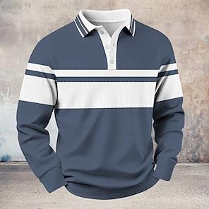 Men's Striped Rugby Polo Shirts Long Sleeve Polo Shirts Collared Shirts Business Casual School Athleisure Daily Wear 3D Print Spring Fall Winter Light Brown Light Grey Dark Gray