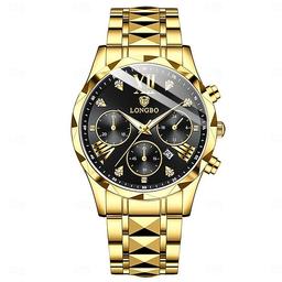LONGBO Men Quartz Watch Fashion Business Wristwatch Luminous Calendar Waterproof Decoration Steel Watch