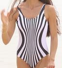 Women's Swimsuits One-Piece Tummy Control Bathing Suits Geometric Vertical Stripe Print Scoop Neck Sleeveless Sporty Swimsuits Black White Summer Beach Poolside Fashion Swimsuit