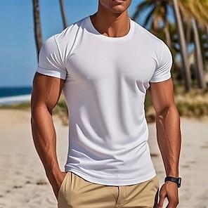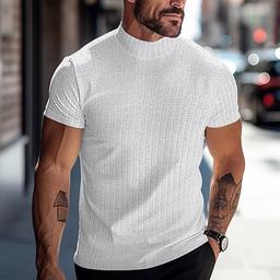 Men's T Shirt Muscle Shirt Ribbed Knit tee Tee Top Short Sleeves Turtleneck Summer Plain Pit Strip Fashion Designer Basic Slim Fit Vacation Street Going out Dark Grey Black White Top Tee for Men