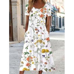 Women's Casual Dress A Line Dress Summer Dress Streetwear A Line Vacation Street Holiday Loose Fit Short Sleeve Crew Neck White Yellow Red Blue Summer