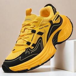 Men's Yellow and Black Athletic Sneakers with Stylish Design and Breathable Mesh Upper – Perfect for Running, Sports and Casual Wear