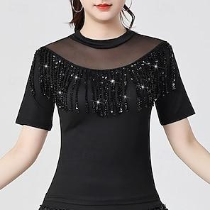 Latin Dance Top Pure Color Splicing Paillette Women's Performance Training Short Sleeve Polyester