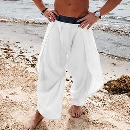 Men's Culottes Wide Leg Linen Pants Trousers Baggy Pants Beach Pants Elastic Waist Straight Leg Plain Comfort Breathable Full Length Casual Daily Holiday Vacation Fashion White Micro-elastic